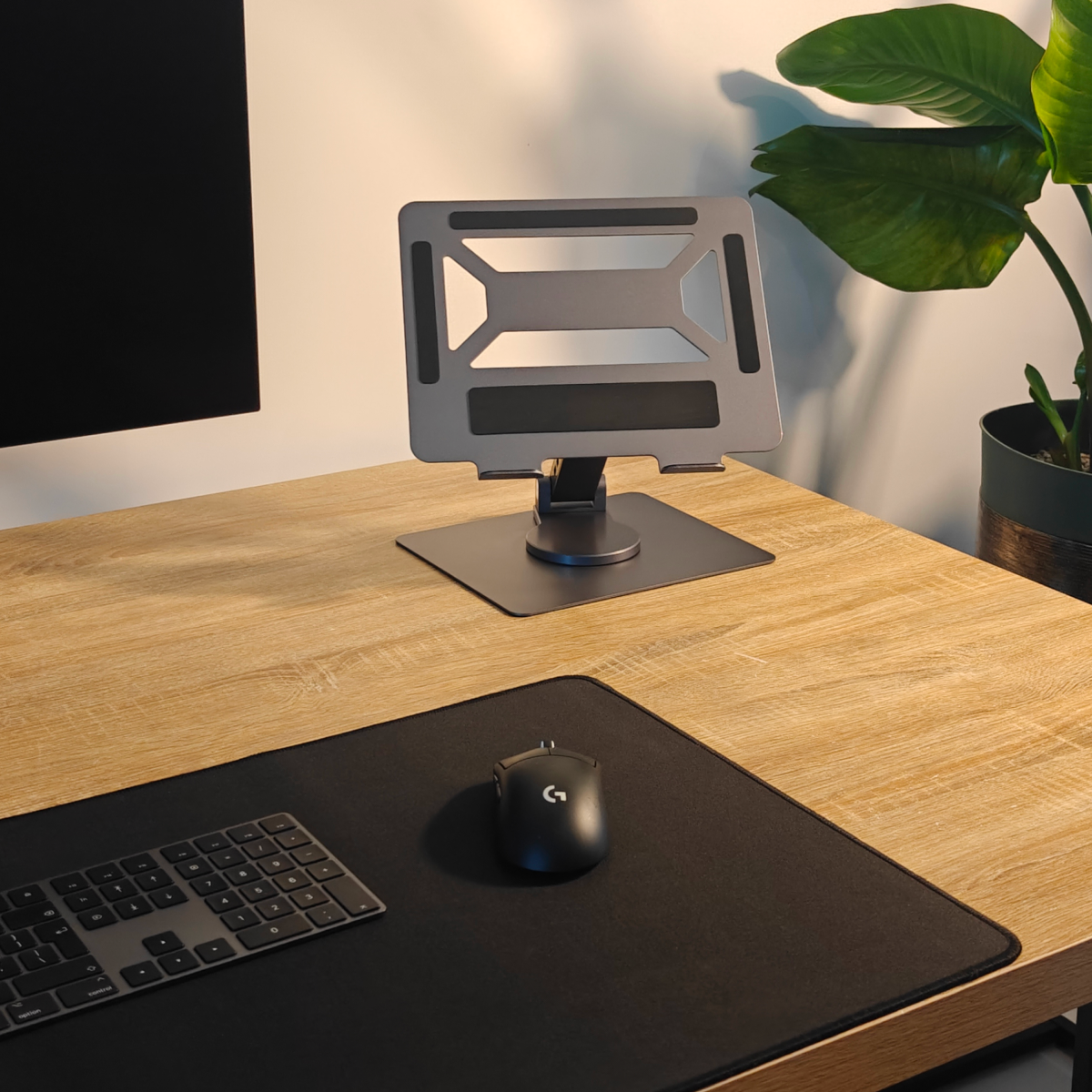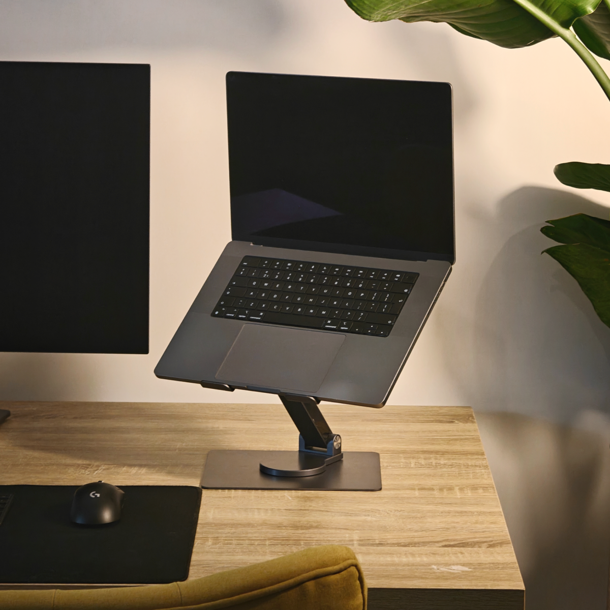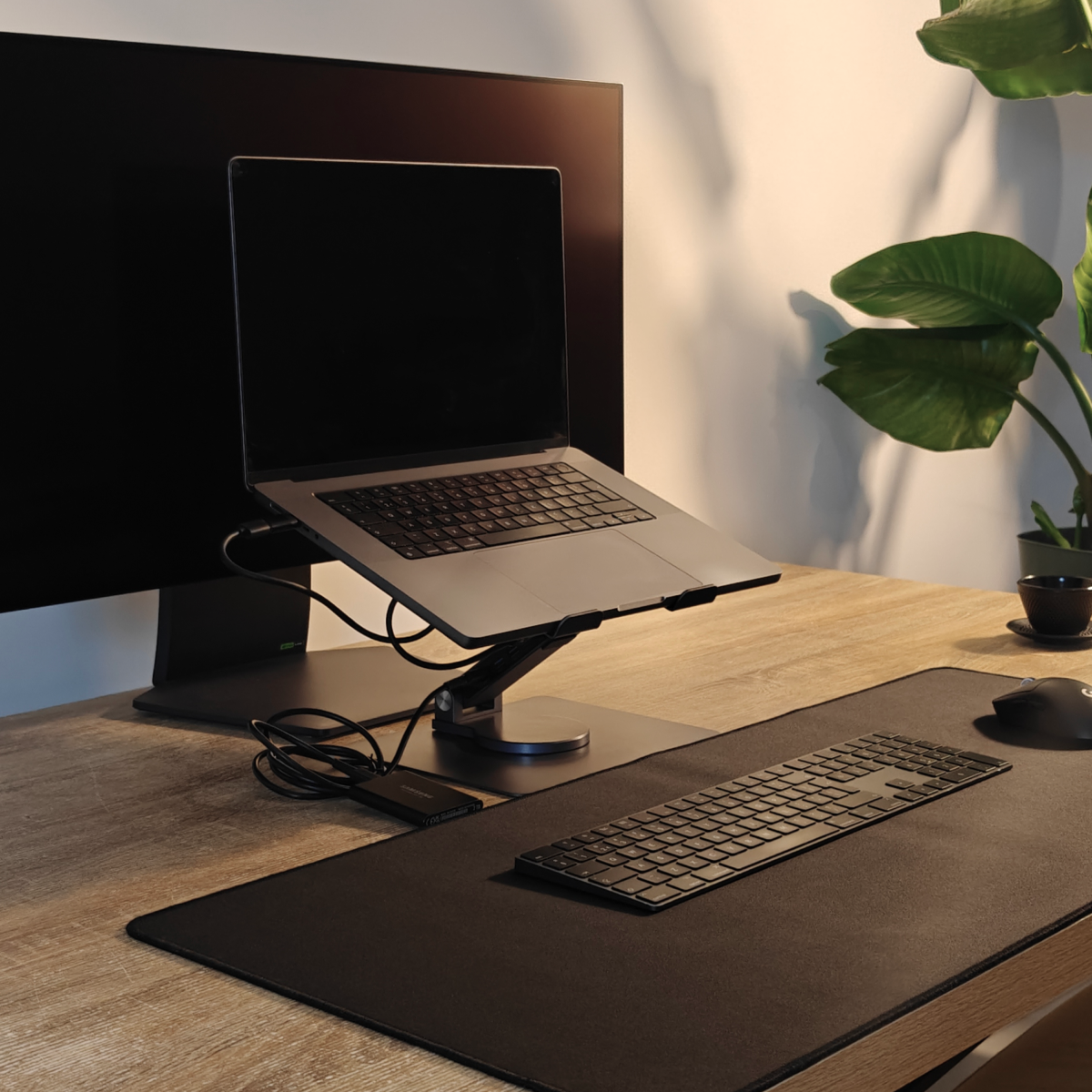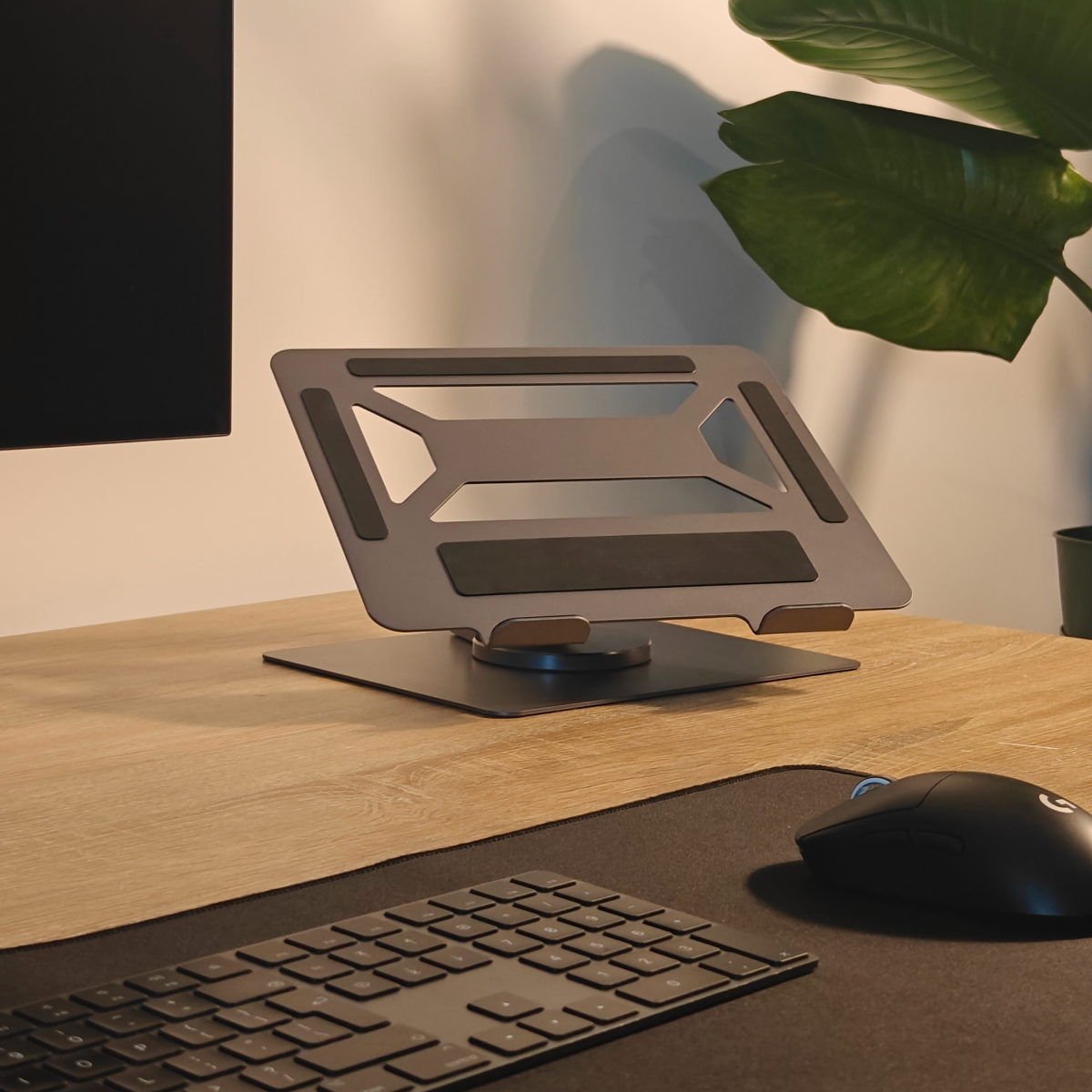 De Ironwill® Laptopstandaard combineert modern design, hoogwaardige materialen en slimme functionaliteit om jouw productiviteit naar een hoger niveau te tillen. Vervaardigd uit duurzaam aluminium en afgewerkt in Space Grey of Silver, sluit deze standaard naadloos aan bij het iconische design van de MacBook Pro — én bij iedere stijlvolle werkplek.