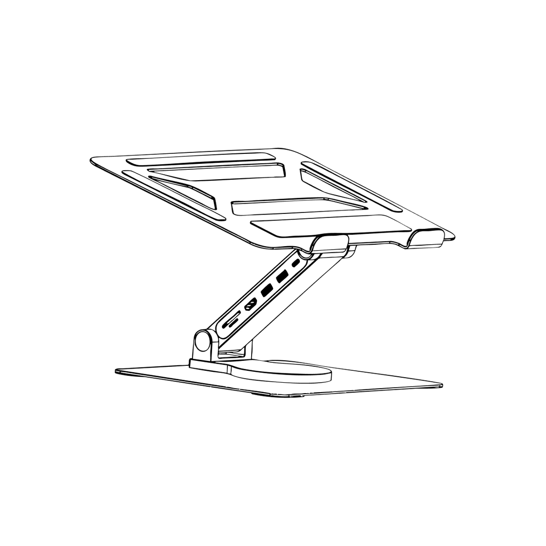 De Ironwill® Pro Laptopstandaard is ontworpen voor professionals die maximale connectiviteit, ergonomie en stabiliteit eisen. Het strakke aluminium ontwerp sluit naadloos aan bij high-end laptops zoals de MacBook Pro, terwijl de uitgebreide geïntegreerde hub jouw werkplek transformeert tot een volwaardig workstation.